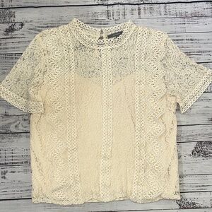 Elevate your style with this chic cream lace blouse. Perfect for adding elegance to any outfit.