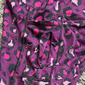 Eye-catching sports set with a vibrant leopard print. Includes a matching top and leggings.