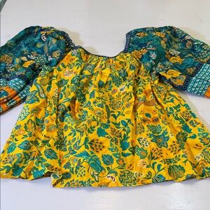 Farm Rio x Anthropologie Lace Inset Peasant Blouse in a tropical print Size S