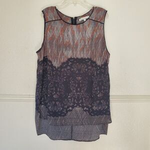 Daniel Rainn Top Hi-Low Sleeveless Blouse Womens Size Large Geometric Lace Print
