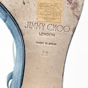 Jimmy Choo Blue Denim Bing 120 Crystal Embellished Wedge Sandal size IT 39