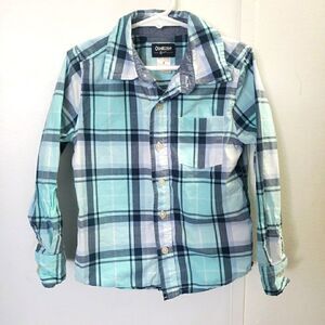 Oshkosh Plaid Pastel Shirt Boys Size 5 Blue Western Country Cowboy