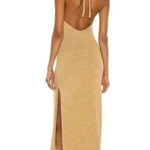 Cult Gaia Karina Halter Knit Midi Dress Wicker Tan Slit Open Back