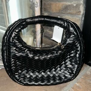 MODA LUXE-Woven Circle Shoulder bag-Black-NWT-Retail $100