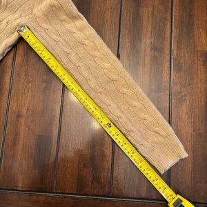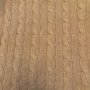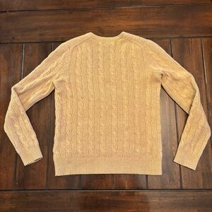 Polo Ralph Lauren. Classic cable knit design medium weight sweater. Camel melange color with white signature embroidered pony logo on the chest. Soft and comfortable. 90% Merino Wool, 10% Cashmere. Long sleeve with ribbed cuffs. Handwash only. Small pinhole in left arm cuff - see photo. Women’s size Small.
