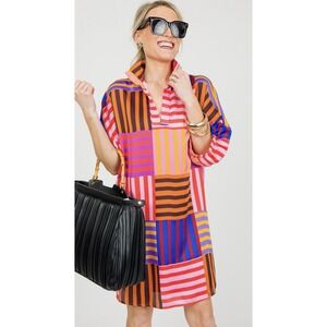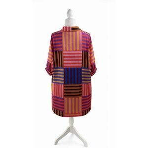 Adrienne Women's Charlotte Multi Color Stripe V-neck collared Dress 2X