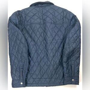 Gently worn UnTuckit Marne Navy Quilted lightweight jacket perfect for fall. Jacket featuring zip close, 2 front snap pockets, 2 zip pockets. Inside jacket has 1 zip pocket and 1 snap closure pocket. See photos for wear and measurements.
