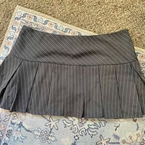 NWT Y2k preppy goth grey pinstripe pleated mini skirt with black bows- med