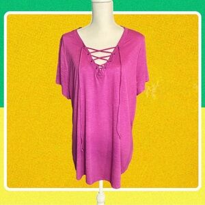 Lane Bryant Orchid Pink / Purple Lace Up V-Neck Short Sleeve Slub Knit Tee 22/24