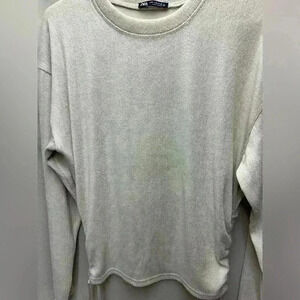 Zara Tan long sleeve side drawstring ruching Shirt Size Medium