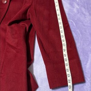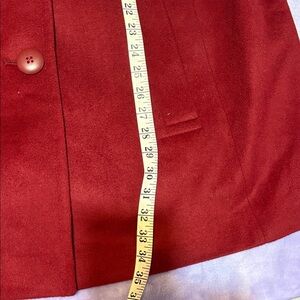 Stylish deep red pea coat for women, perfect for a chic and timeless look. Pre-owned with buttons, two hand pockets on the sides, and a pleat at the back, measurements are in the photos. #p584