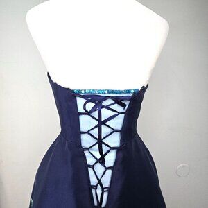 Rachel ALLAN Navy Floral Embroidered Sweetheart Short Dress 4397