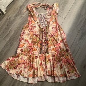 Free People Summer in Tulum pink combo floral print linen blend tunic or mini dress.