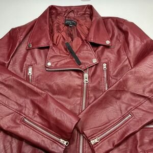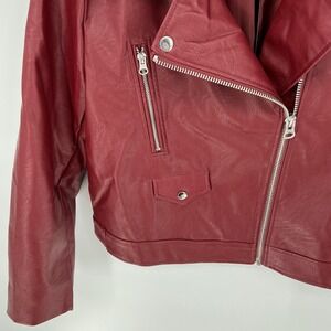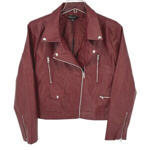 LOVETREE Women's Wine Faux Leather Moto Jacket Plus Size 3X Zip Up Buckle Retro Y2K 90's