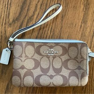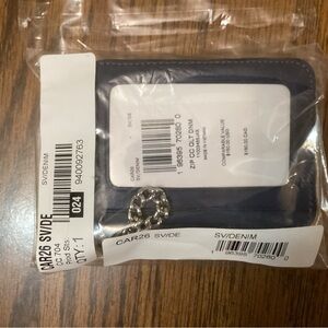 Coach Zip Card Case in Denim/Silver With Dust bag, NWT. 2 Card Slots, Zip Compartment, Chain Wrist Strap and Clip