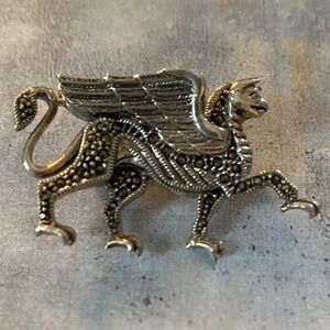 Exquisite Vintage Sterling Silver and Marcasite Griffin Brooch