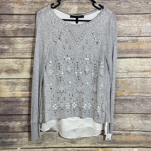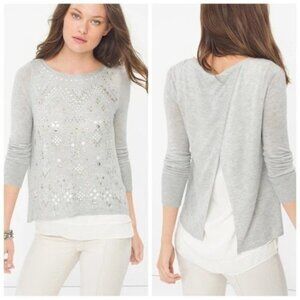 White House Black Market Sweater M Medium Studded Embellished Split Back Gray