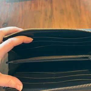 Gucci wallet in deep blue leather. Adds sophistication to any outfit.GUC