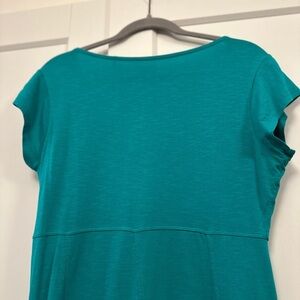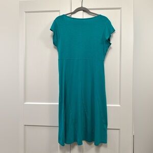 This Toad&Co short-sleeve dress in a gorgeous Kelly green is the perfect mix of comfort and style. Made with a soft, breathable, and sustainable blend of organic cotton, Tencel, and spandex, it drapes beautifully while keeping its shape.
