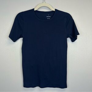 Everlane M Navy Ribbed Short Sleeve Tee Casual Supima Cotton Preppy Quiet Luxury