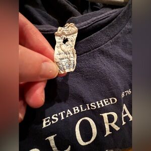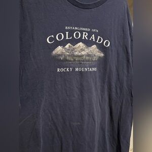 Explore the outdoors in style with this Colorado Rocky Mountains T-shirt. Featuring a classic navy blue color, it's perfect for casual wear. Slight stain on front - shown in pictures.