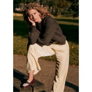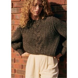 SEZANE Dark Brown & Subtle Gold Metallic Alpaca Wool Knit Oversized Sweater