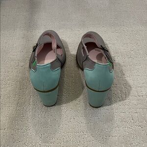 Experience comfort and style with these gray and turquoise Mary Jane heels. Perfect for everyday wear, these shoes offer a chic and versatile look. Women’s size 41. Good preowned condition