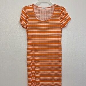 Jolie and Joy womans XL striped orange dress lettuce sleeve detail side slit