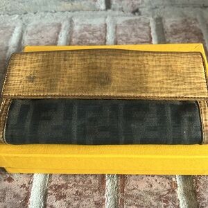Elegant Fendi wallet with signature logo design. Features a secure snap closure and stylish leather trim.