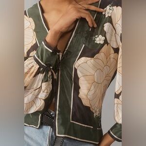 Farm Rio Long-Sleeve Silky Wrap Top | Small