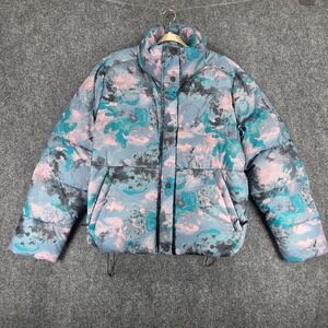 Stay warm in style with this Outdoor Research Coldfront Down Jacket featuring a unique abstract print in soft blue, teal, pink, and charcoal tones. Designed for cold weather performance, this jacket is insulated with responsibly sourced down and built for everyday wear, travel, or outdoor adventures