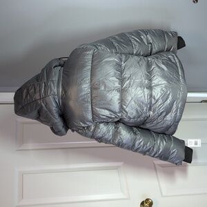 Steve Madden Silver Grey Quilted Puffer Jacket Parka Faux Fur Lined NWT. Size XL. Color - Ice Grey. Hooded. 100% polyester. Deep pockets. Durable zipper. Machine wash. See pics for approximate measurements.