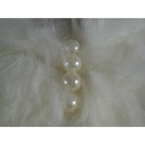 The item is really soft, feel like real fur. It come with a pearl closer in front. Super soft lining, keeps you warm. one size fits most.