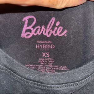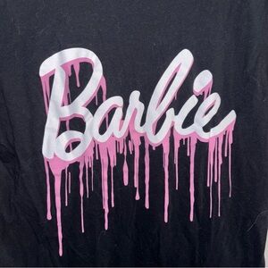 Trendy Barbie tee with a dripping logo design. Black base with pink highlights. Ideal for everyday style.