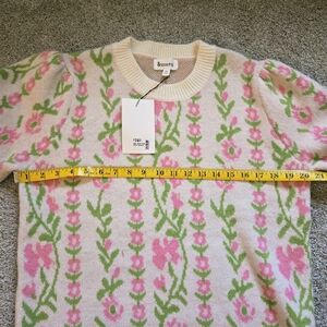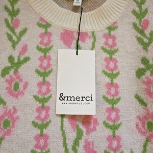 NWT &merci Chic Floral Crew Neck Sweater Pink Green, Fairy Cottagecore Spring