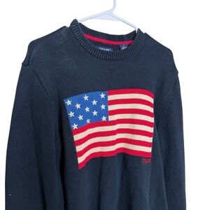 Vintage Chaps Navy Blue American Flag Sweater Size Medium