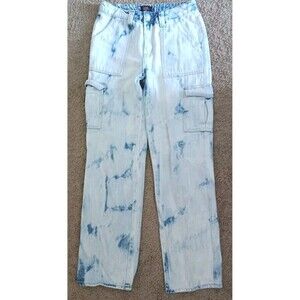 Free People Distressed Jeans Size 27 Crochet Lace Relaxed Ella Blue Raw Hem