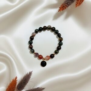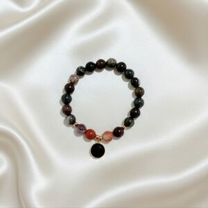 Mookaite/Brecciated Jasper Bracelet With Onyx Charm