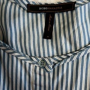 BCBG MAXAZRIA blouse, size M, blue and white stripes, 100% silk, EUC, this is a beautiful flutter sleeve blouse, pit to pit 19 1/2 inches, length 26 inches, 100% silk