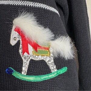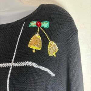 Ugly Christmas Sweater Black with Sparkly Embellishments Vintage L