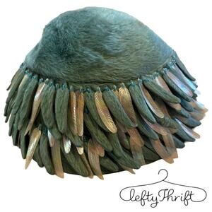 1960s Nelkin Green Faux Fur Feather Hat Grenadier Austria Vintage Hollywood