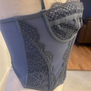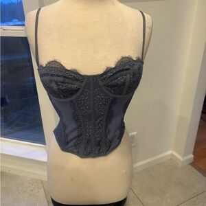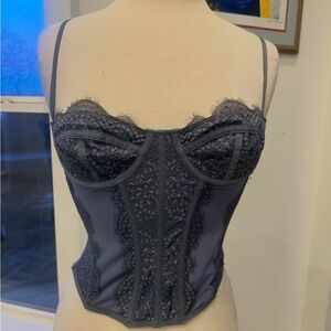 Chic charcoal lace bustier. Combines style and comfort. Perfect for a night out with a blazer! No wear.