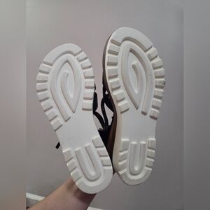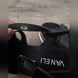 Vaneli Womens Black and Brown Wedge Sandals Size 6.5