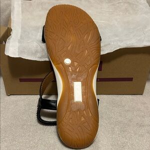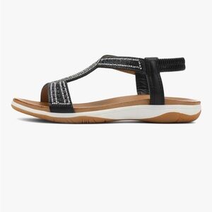 Elevate your look with these elegant black and silver sandals. Perfect for adding a touch of sophistication to any outfit. Brand new never worn.