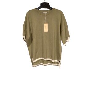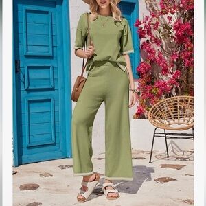 Ekouaer Women green 2 Piece Short Sleeve Sweater Top Wide Leg Long Pants size L.