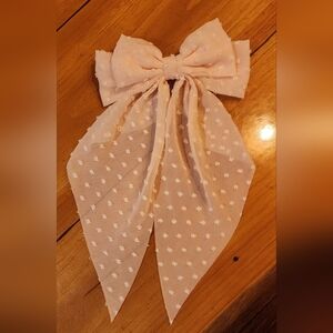 Set of two bow hair clips in pink and cream. Perfect for adding a touch of elegance to any hairstyle.