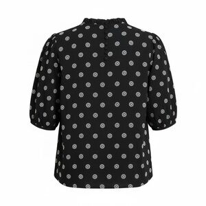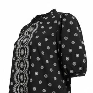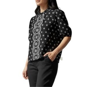 Loft Black and White Embroidered Eyelet Puff Sleeve High Neck Boho Top Size L