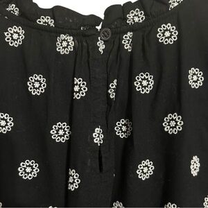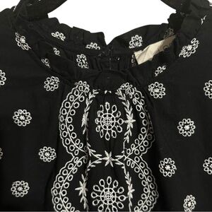 Ann Taylor Loft black and white embroidered blouse with floral design with puff sleeves and a mock neck. Features: a keyhole cut-out and button closure on the back of the neck, 100% cotton, puff sleeves with elastic cuffs, ruffled neckline, Embroidered white floral design with eyelet centers, central embroidered panel. Excellent Preloved Condition without flaws. Measurements: Sleeves-14” Bust-20” Length-22” Approximately. New to Poshmark? Sign up with my code VIRGINIAGATOR and get $10 off your first purchase!