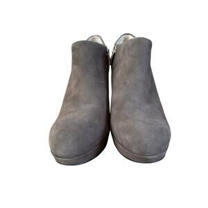 NEW Vince Camuto Stiletto Dark Gray Suede Ankle Logo Zipper Elvin Booties 8.5
