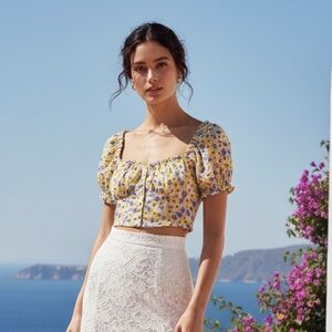 Altar'd State Sky Floral Midi Tiered Skirt Ivory Pink Floral Women’s Size XL